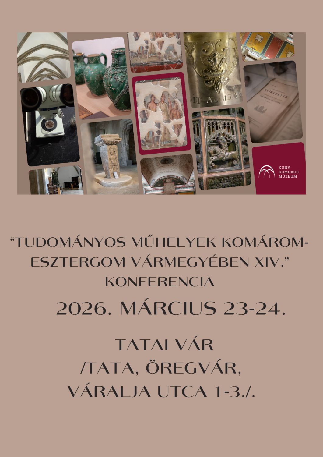 A „Tudományos Műhelyek Komárom-Esztergom vármegyében” című konferenciát tizennégy évvel ezelőtt szervezte meg első ízben a tatai Kuny Domokos Múzeum. A cél az volt, hogy hiánypótlásként egy olyan szakmai fórumot hozzon létre és vezessen be a megyei hatókörű városi múzeumként működő intézmény, ami összefogja a megye területén lévő tudományos (kutató)intézményekben, így a múzeumokban, könyvtárakban, levéltárakban zajló tudományos kutatásokat és azokat a kutatókat, akiknek kutatási szakterülete Komárom-Esztergom vármegye területére összpontosul.