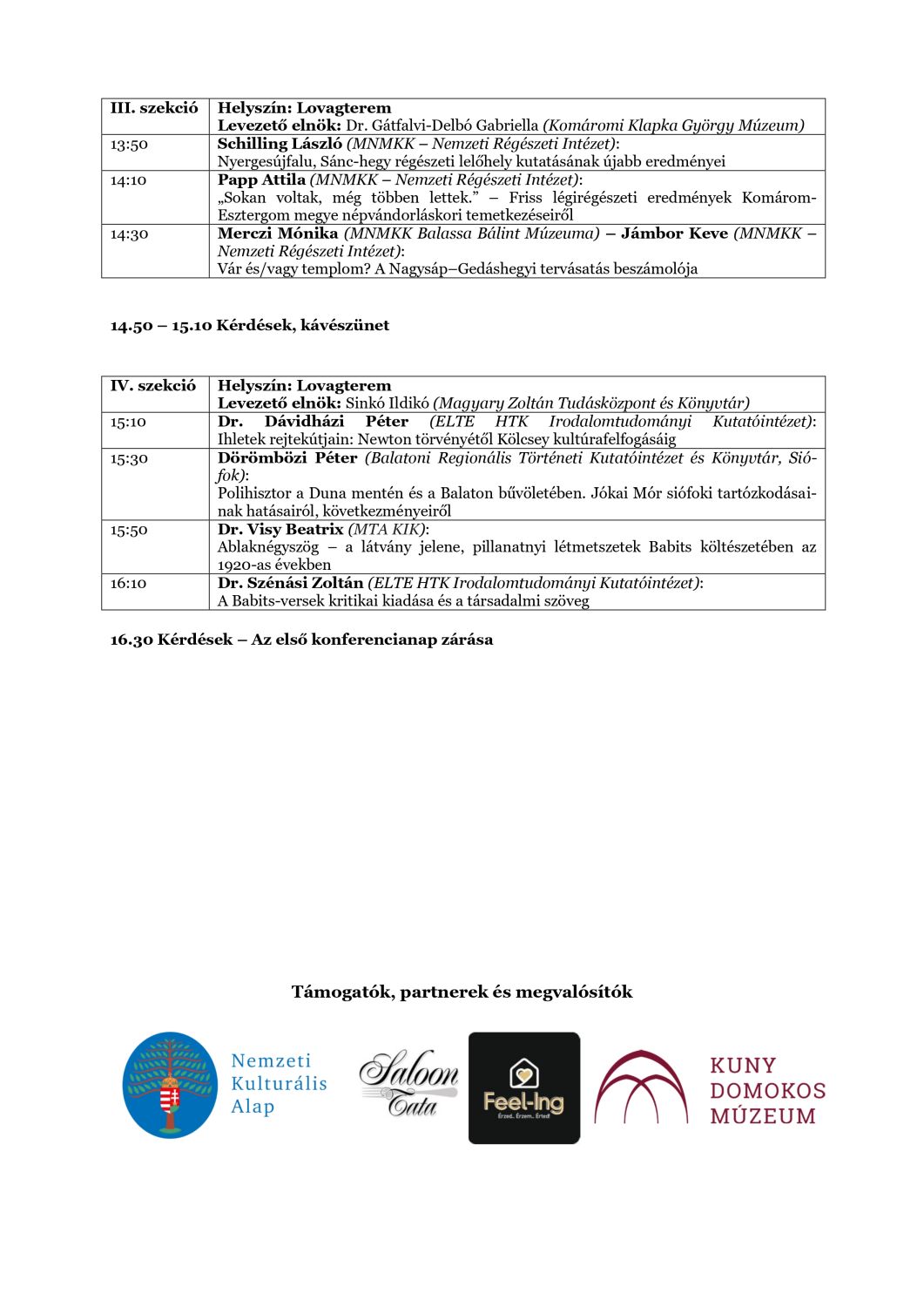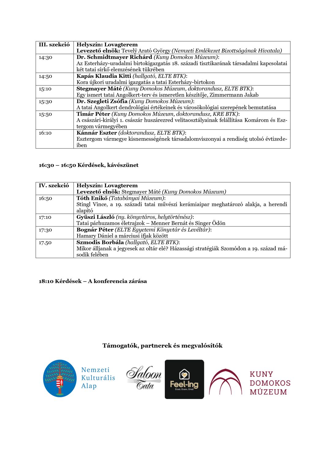 A rendezvény a Nemzeti Kulturális Alap, a Feel-Ing Ingatlaniroda és a The Saloon Tata étterem támogatásával valósul meg.